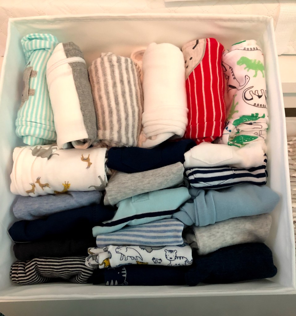 Literally all of the newborn sized clothing we have fits inside this 12×12 inch organizing cube!